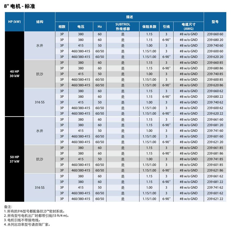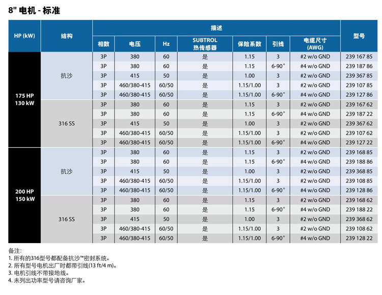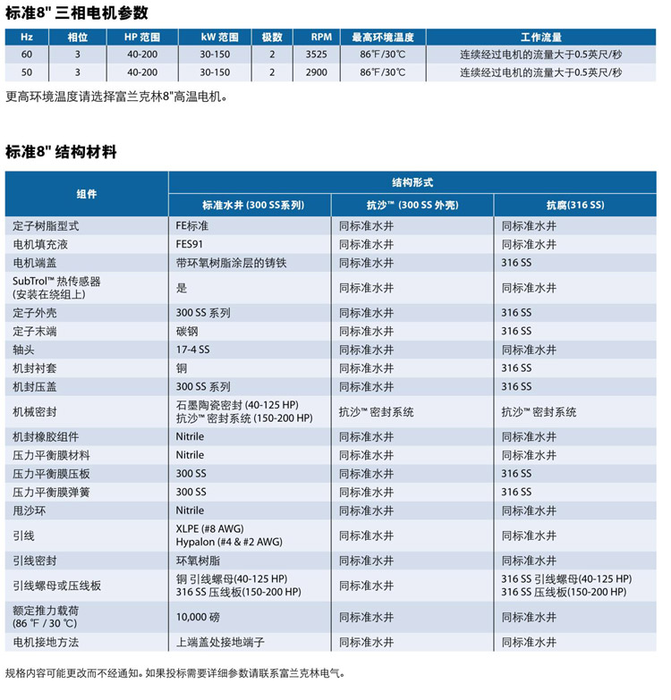 暂无8"密闭式潜水电机-标准型腐蚀性能表!