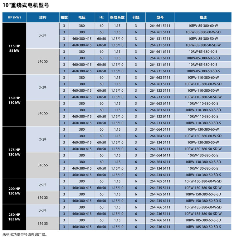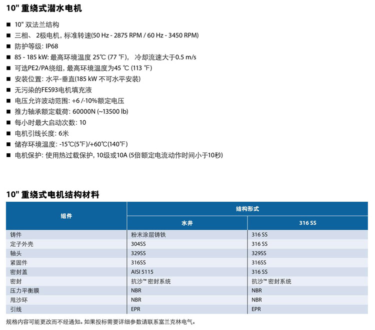 暂无10"重绕式潜水电机腐蚀性能表!