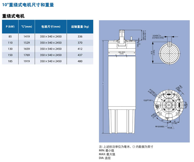 暂无10"重绕式潜水电机安装尺寸!